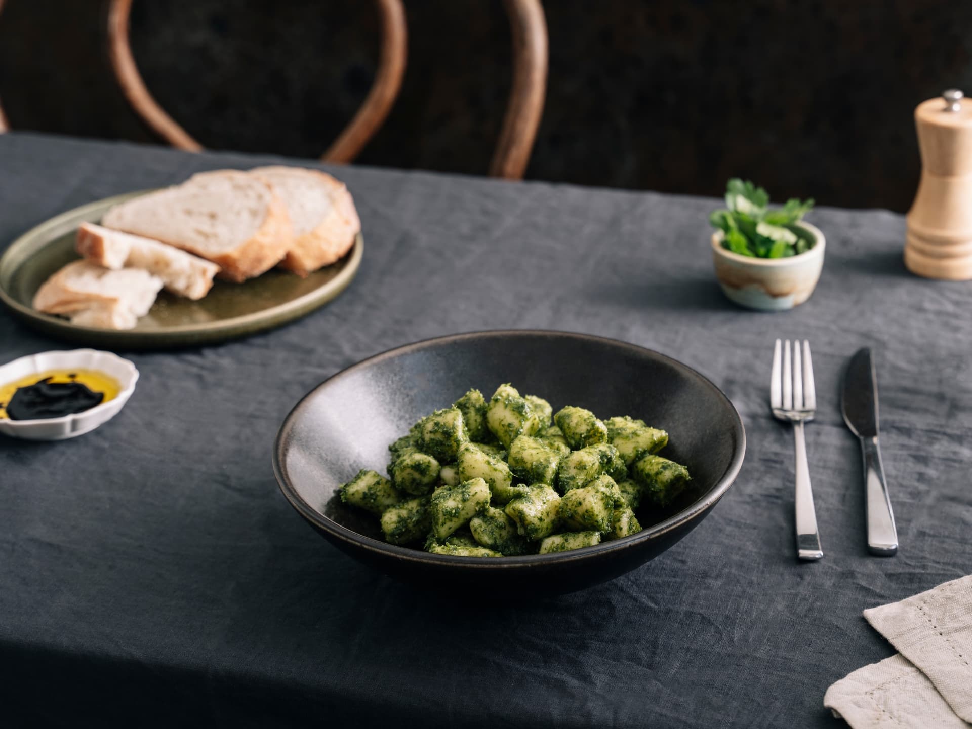 Nutty basil pesto but made decadent over pillowy puffs of potato gnocchi. We think this dish is the perfect combination of naughty and nice with its creamy basil goodness and hint of tangy sass.
