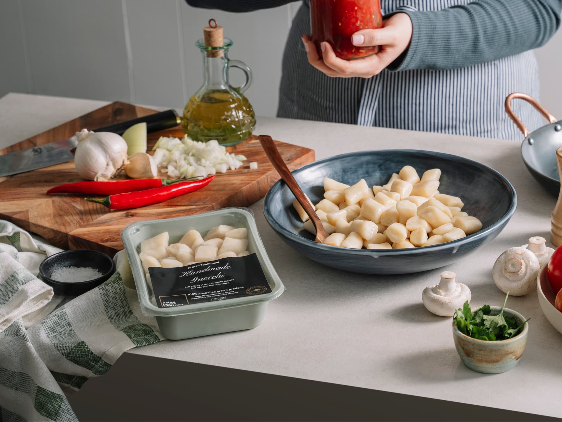 You may as well be sitting on Nonna’s porch with this classic sauce of Victorian roma tomatoes, fragrant herbs and market fresh vegetables served on pillowy nuggets of gnocchi. A classic Italian family recipe, but using fresh Australian-grown produce.