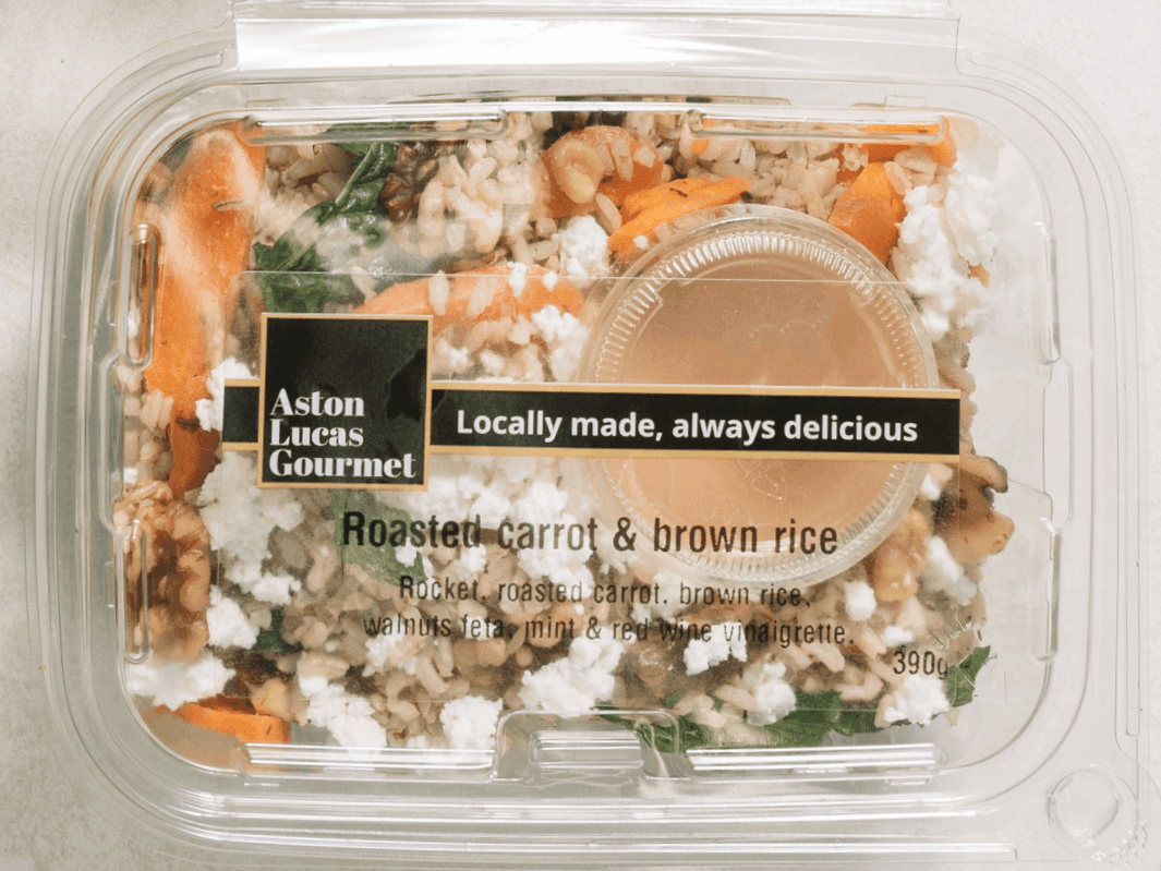 This is not your average garden salad. Flavours of roasted carrot, tangy rocket, crumbly feta, crunchy walnuts, fresh mint and brown rice come together with a red wine vinaigrette dressing to bring a party to the taste buds.