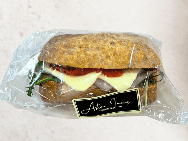 This gourmet panini packs a punch with champagne ham, rocket, pepperoni, mozzarella & caramelised onion. A delightfully fresh yet flavour-packed lunch option.