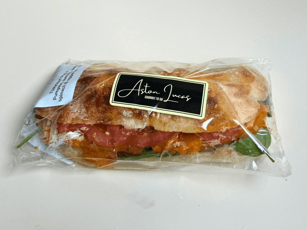 Roast pumpkin, nutty basil pesto, fresh tomato, provolone and a handful of spinach. Who knew a meat-free sandwich could pack so much flavour?!