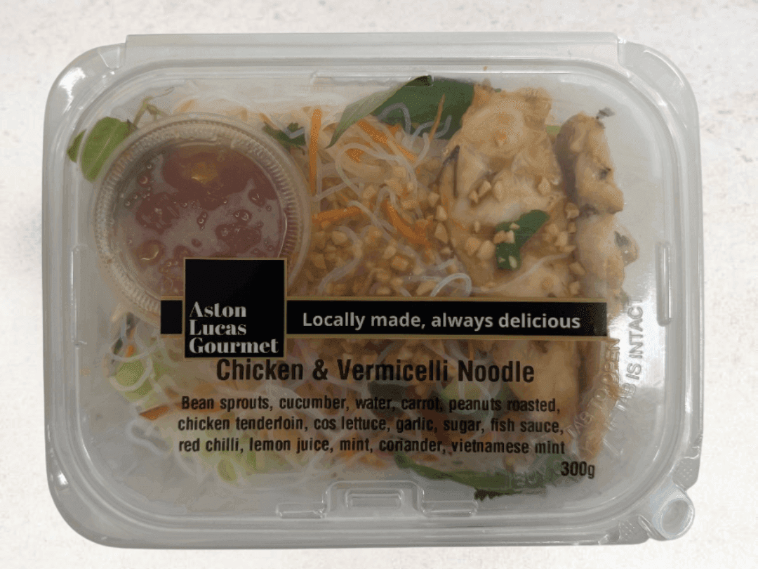 The perfect fresh option for a light lunch that still excites the taste buds in this marrying of grilled chicken, vermicelli noodles, bean sprouts, cucumber, carrot, roasted peanuts, cos lettuce, coriander, mint and a Vietnamese dressing.
