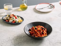 Our classic tomato passata recipe, made from rich Victorian-sourced Roma tomatoes, but with an exciting twist. A punchy combination of capsicum, mushrooms, red onion, garlic, kalamata olives and a liberal splash of pinot grigio gives this plant-based dish a unique spin on an all-time favourite.