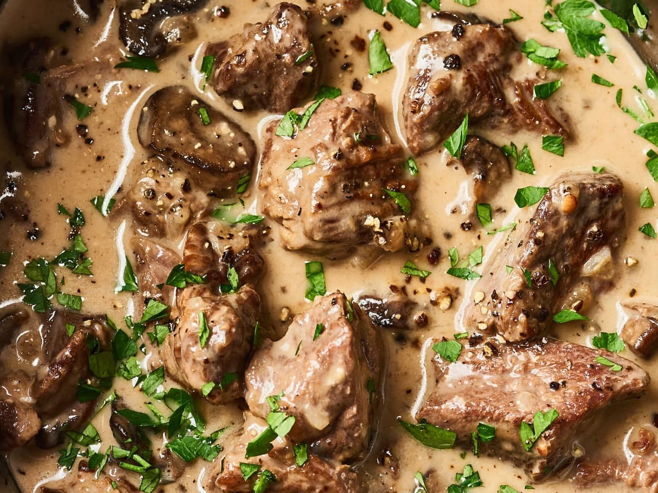 Tender pieces of beef are slow-cooked to perfection in our creamy stroganoff sauce. Serve with fresh pasta or rice.