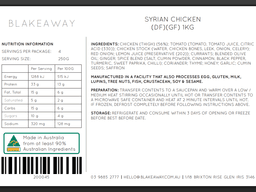 Red onion, Honey, Lemon juice, Chicken thigh, Tomato, Chicken Stock [Water, Chicken bones, Leek, Onion, Celery], Currants, Ginger, Spice blend [Cinnamon, Turmeric, Chilli (ground), Black pepper, Salt, Cumin powder, Sweet paprika], Coriander, Thyme, Garlic, Cumin seed, Saffron, Cous cous (Wheat), Almonds, Dried apricot, Chermoula Spice [Black pepper, Cumin (ground), Paprika, Turmeric, Cayenne, Garlic, Onion, Salt, Dried coriander, Dried parsley], Salt, Blended olive oil
