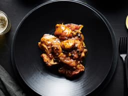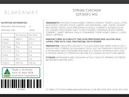 Chicken thigh, Red onion, Coriander, Lemon juice, Tomato, Currants, Ginger, Saffron, Honey, Spice blend [Cinnamon, Turmeric, Chilli (ground), Black pepper, Salt, Cumin powder, Sweet paprika], Cumin seeds, Thyme, Blended olive oil, Chicken Stock [Water, Chicken bones, Leek, Onion, Celery]