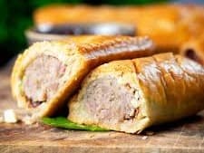 Beef sausage, Puff pastry (Wheat, Milk), Onion, Eggs, Worcestershire sauce (Wheat, Fish), Tomato sauce, Mixed dried herbs