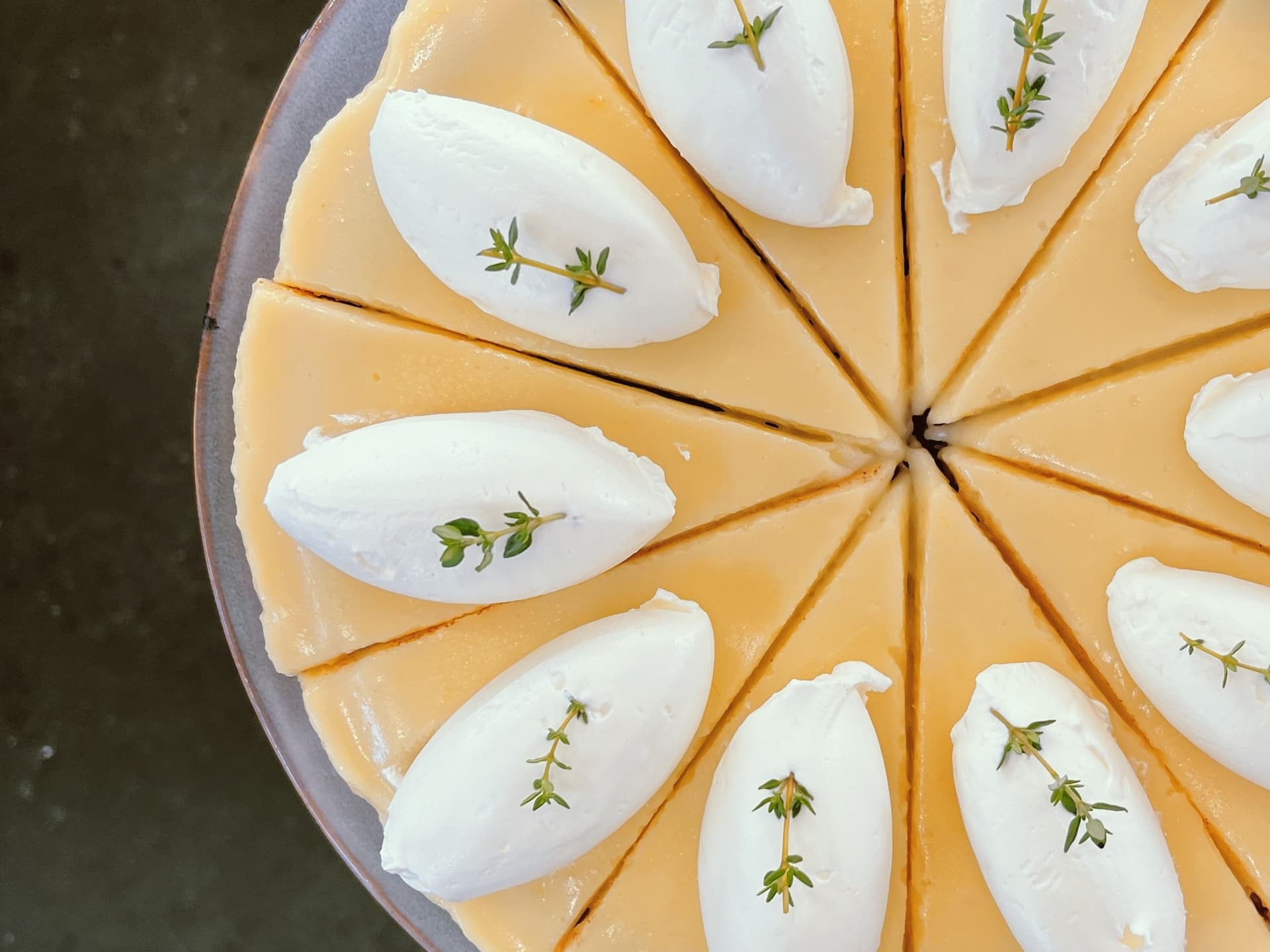 Baked vanilla cheesecake with lemon curd and whipped cream