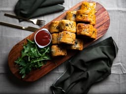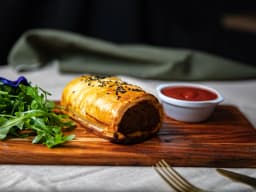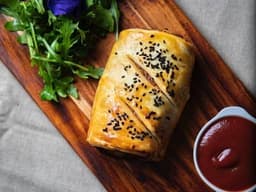Beef sausage mince, Puff pastry (Wheat), Onion, Tomato paste, Mustard seeded, Egg yolk, Tomato sauce, Worcestershire sauce (Wheat, Fish), Sesame seed, Basil, Sage, Ground pepper
