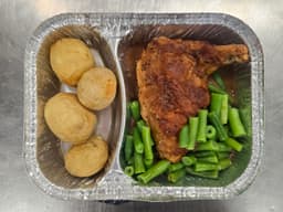 Your meal is supplied in a container designed for heating in a conventional oven and microwave. Meals must be heated to a minimum internal temperature above 70°C. Do not remove lid. Reheating times are approximate: From frozen thaw on defrost setting for 5 mins. Once defrosted heat on high for 4-5 mins or until hot.