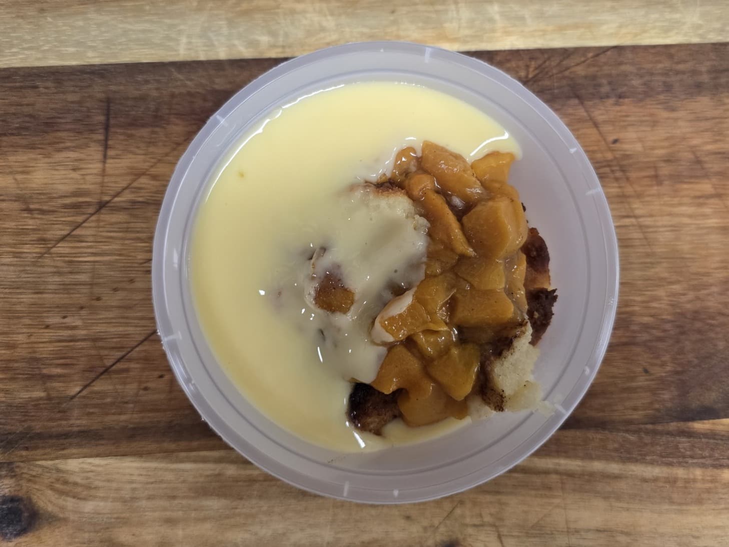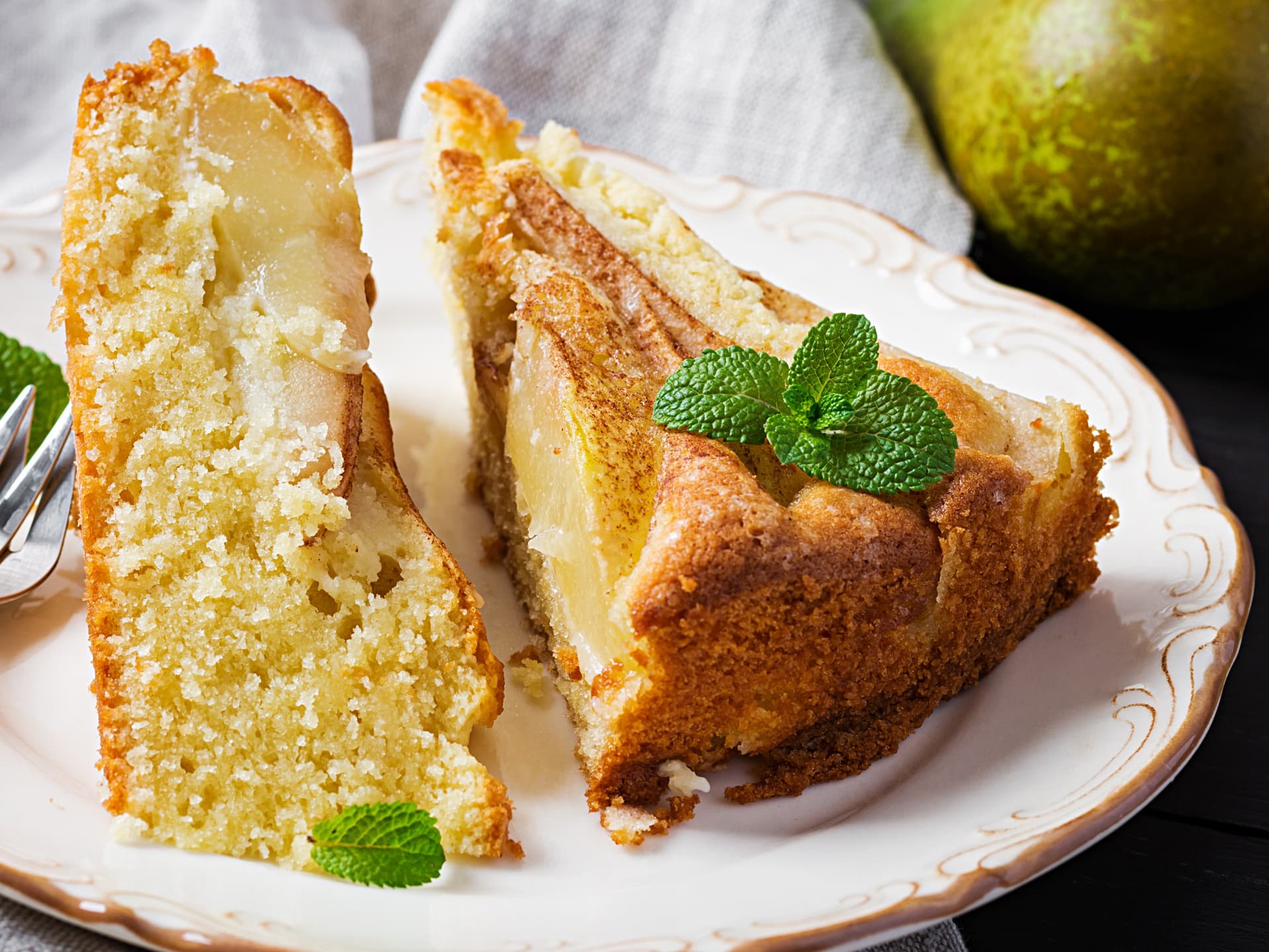 NOTE: LIMITED QUANTITY AVAILABLE French pear cake served with custard