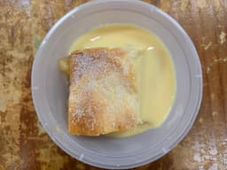 Custard [Skim milk, Sugar, Milk solids, Thickener (1442), Stabiliser (412, 415, 407,410), Mineral salt (451, 452, 450), Flavour, Colour (160a)], Apple, Wheat flour, Sultanas, Margarine [Emulsifier (322), Vegetable oil, Vegetable fat, Water, Salt, Emulsifier (471), Preservative (202, 211), Acidity regulator (330), Antioxidant (307b), Natural Colour (160a)], Sugar, Modified starch (E1442), Water, Ground cinnamon