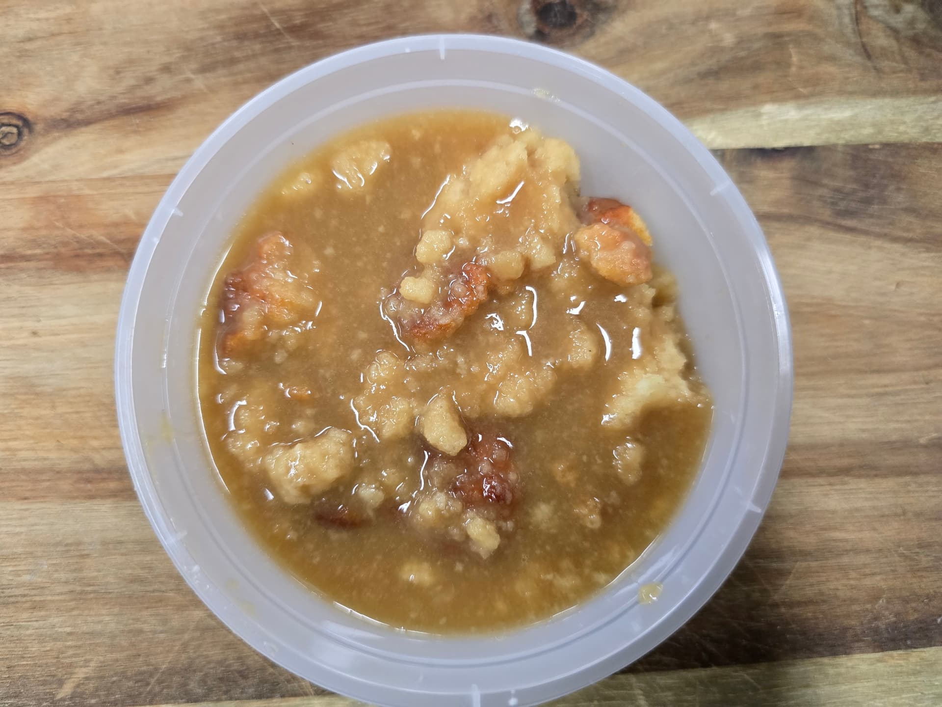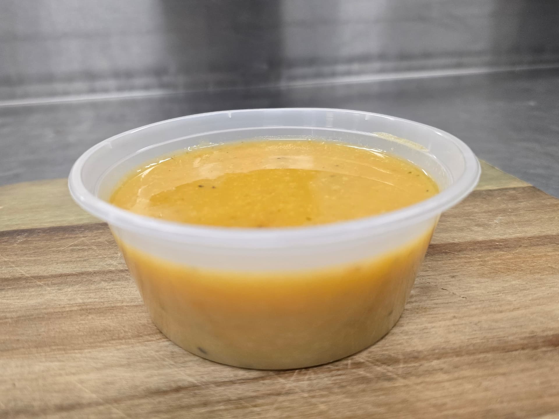 A blend of mixed vegetables, slowly simmered to create a thick vegetable soup. It's a comforting and satisfying meal option.