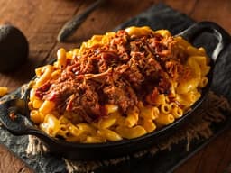 BBQ Brisket served with macaroni cheese