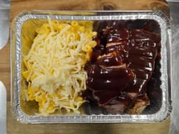 Macaroni pasta (Wheat), Beef brisket, Cheese Sauce [Milk, Salt, Starter culture (Wheat), Anti-caking agent (460)], BBQ Sauce [Fruit puree, Water, Tomato paste, Apple paste, Sugar, Thickener (1422), Food acid (330), Salt, Molasses, Spices, Caramel Colour (111), Vegetable gum (412), Xanthan gum (E415)], Mustard, Salt, Pepper