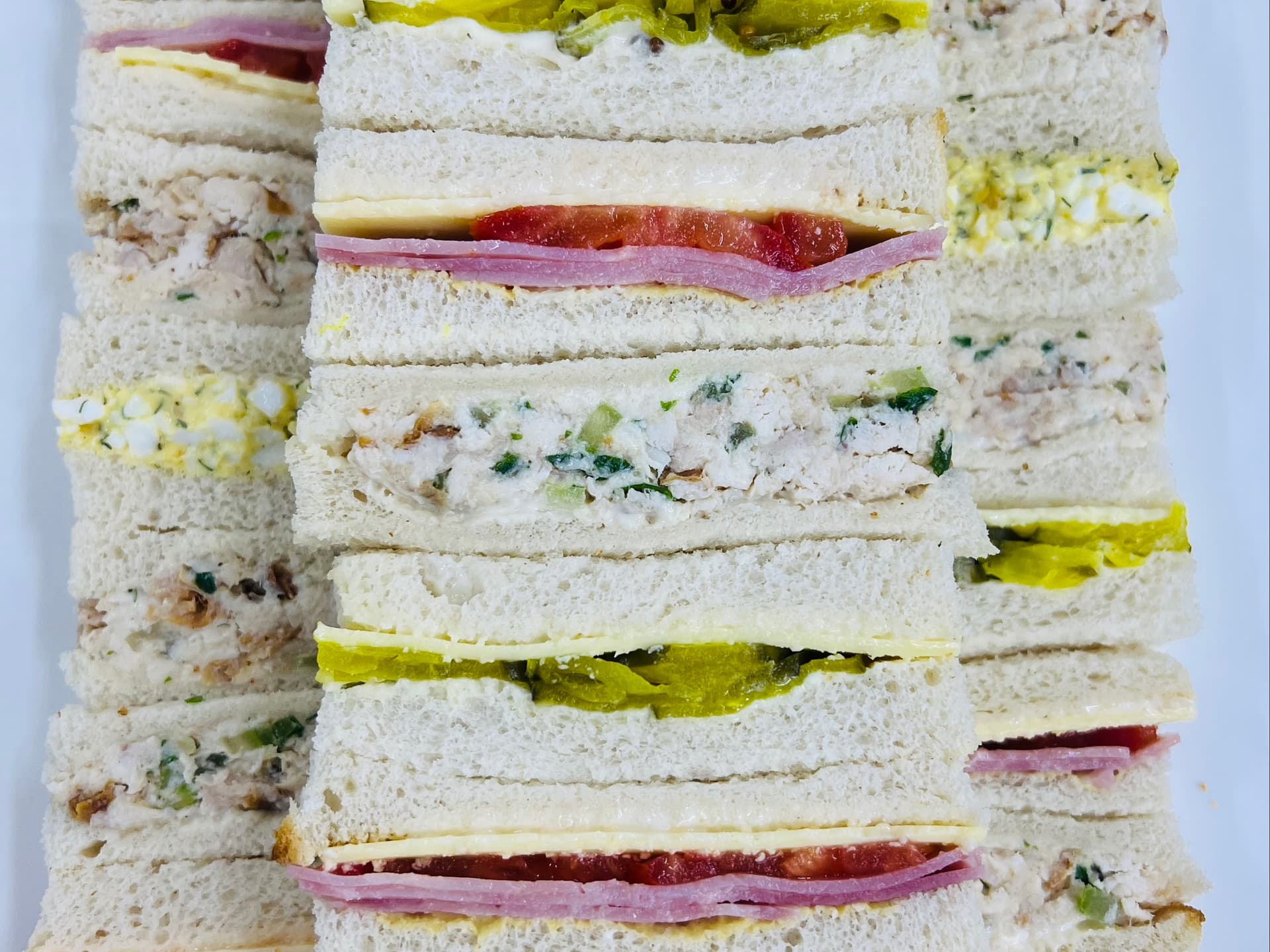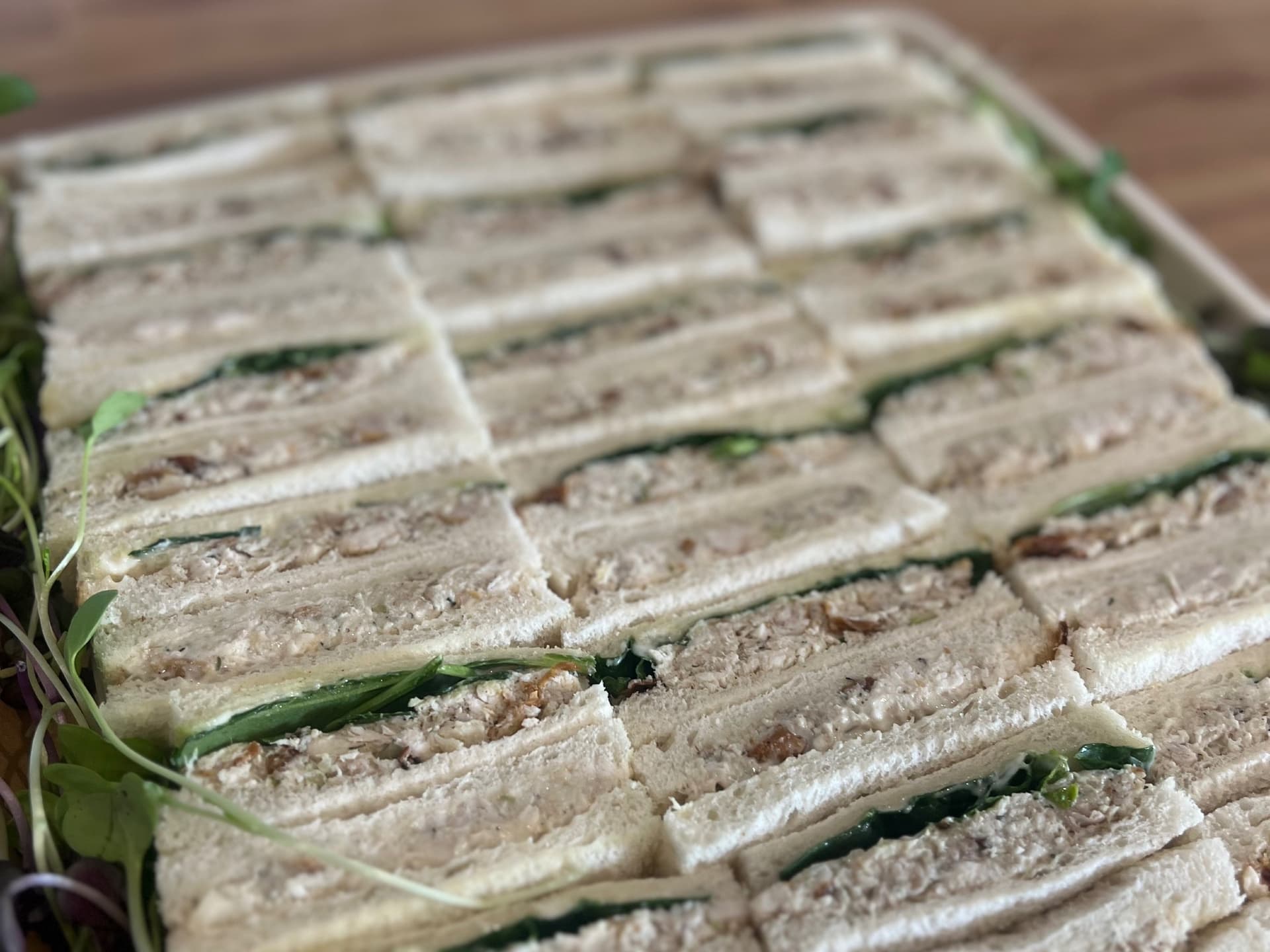 36 ribbons of made to order chicken celery and mayo sandwiches