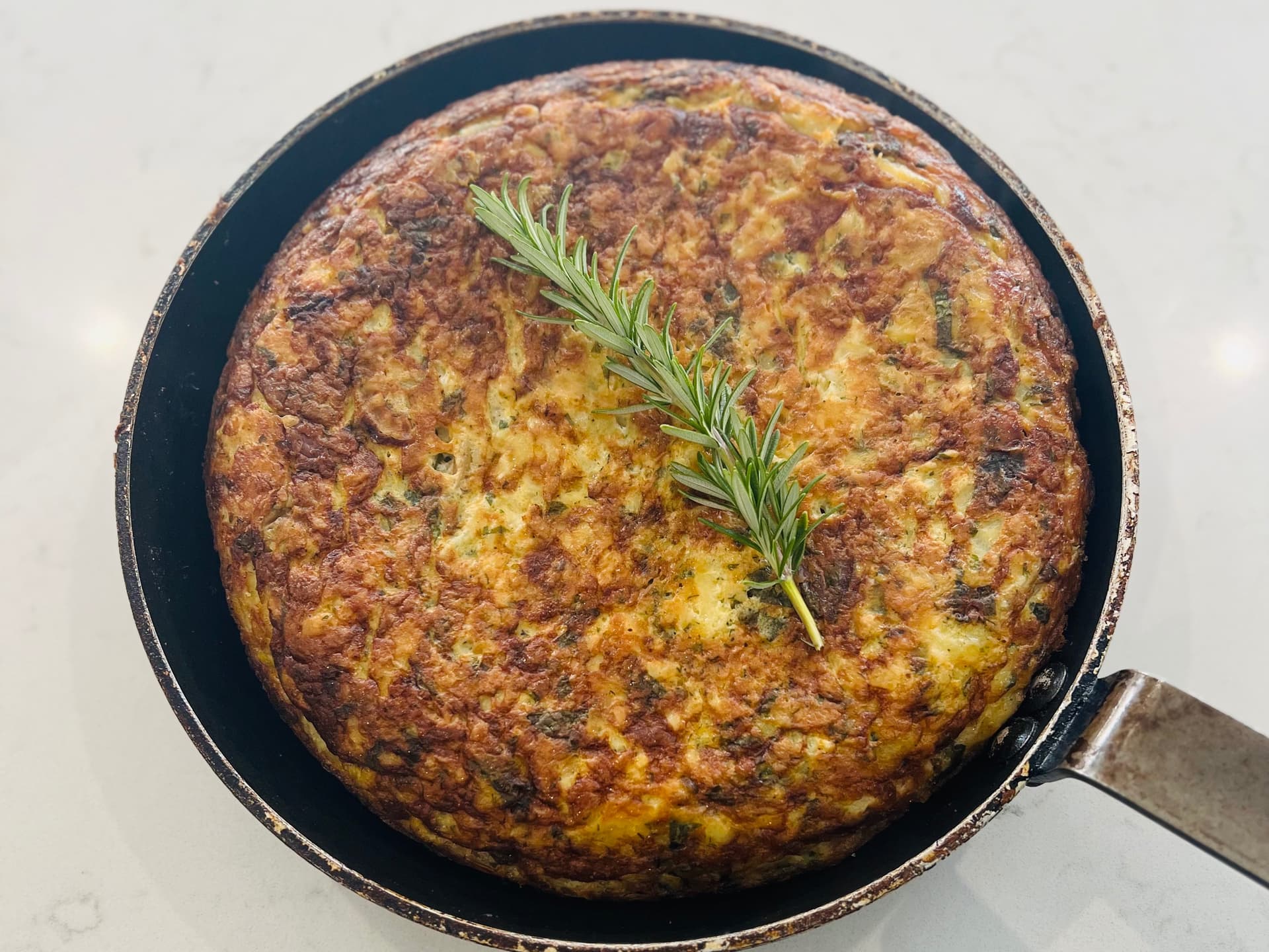a spanish style vegetarian tortilla perfect hot or cold that will feed the whole family-serves 8 gluten free