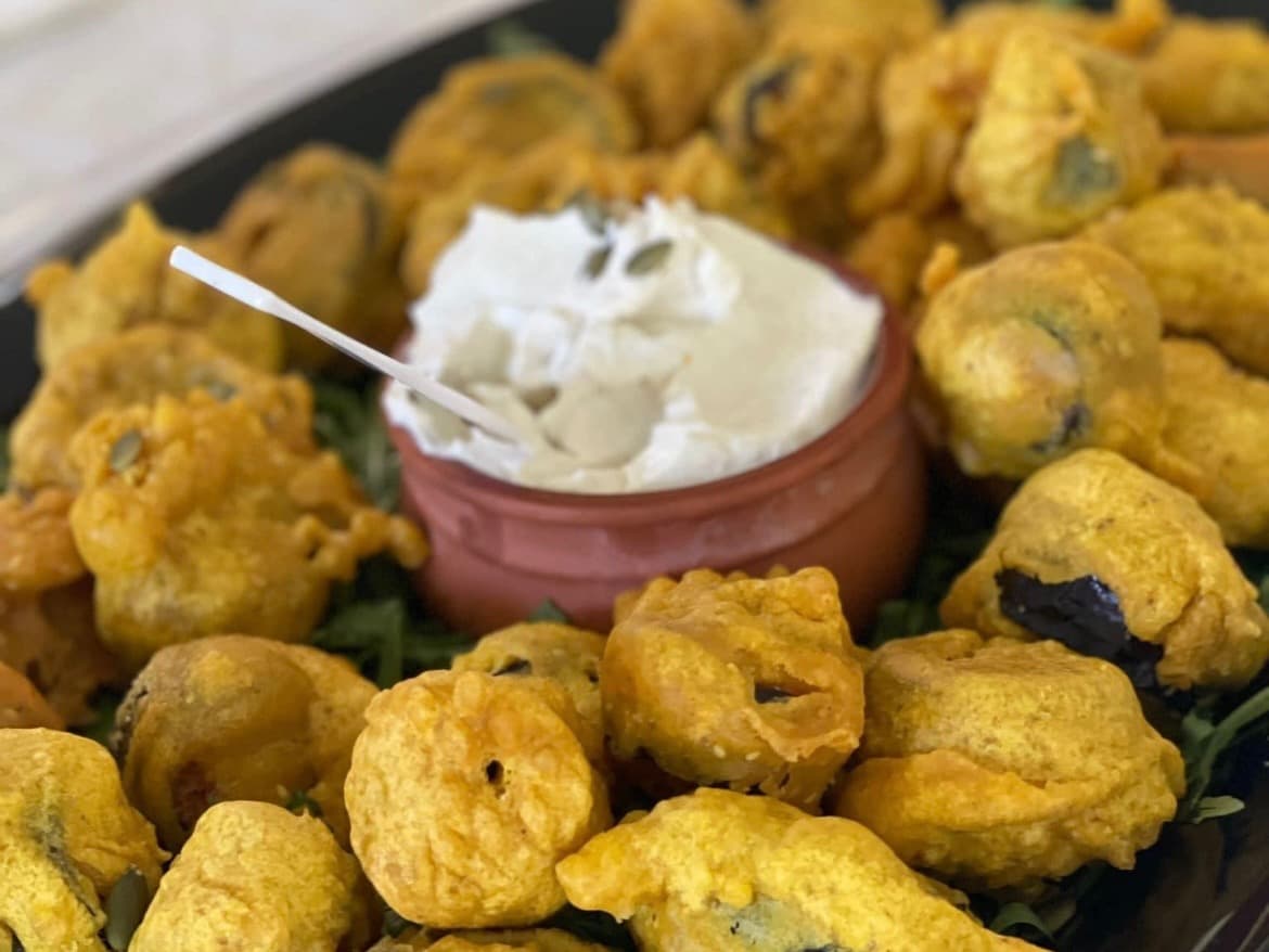 gluten free and vegan bitesized eggplant fritters served with tahini and pepitas (30 pieces)