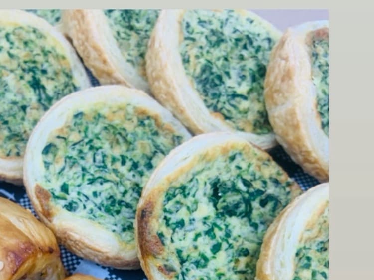 ham and cheddar or spinach and feta with caramelised onion minimum order 2 dozen