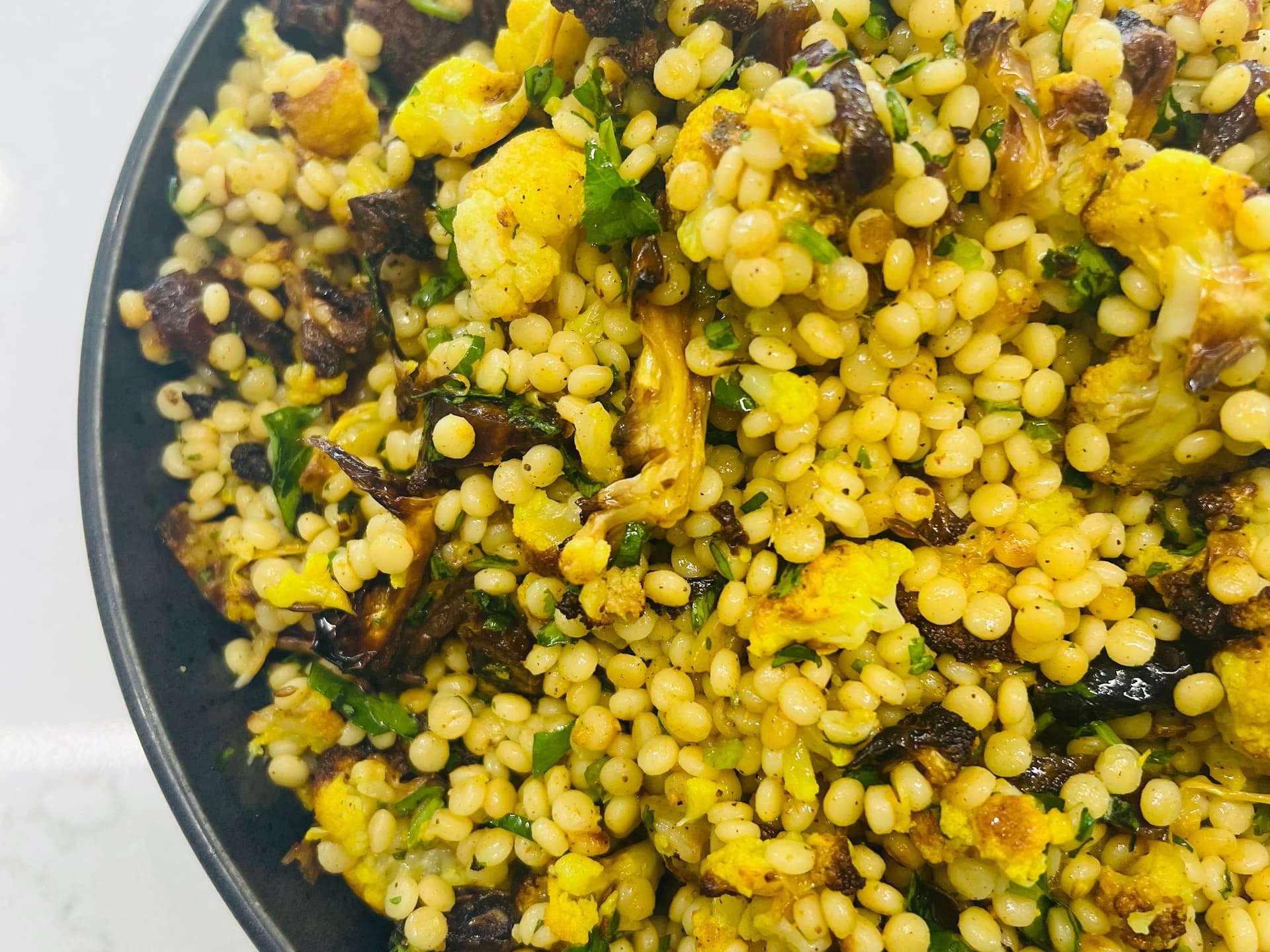 steamed cauliflower and broccoli in a cheesy white sauce topped with breadcrumbs and herbs