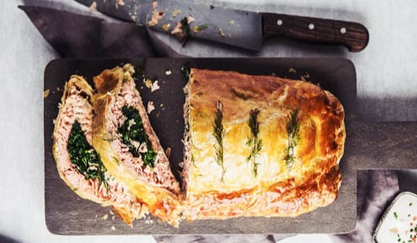 There are certain dishes that remain in your memory as a favourites no matter how many years pass and this is one of those meals! Flaky puff pastry encasing fresh salmon fillets, with potato, egg and spinach. Perfect for lunch, dinner or a picnic - hot or cold. We deliver fully cooked but if you want to reheat let us know so we can cook til pastry is light. We supply with sour cream and lemon wedges.