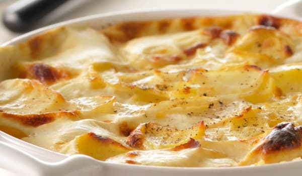 Thinly sliced potatoes baked in a mixture of garlic, cream and herbs and topped with cheese. The ultimate weekend side dish and works well with any meat, or by itself! I am happy to make this vegan if you would like.