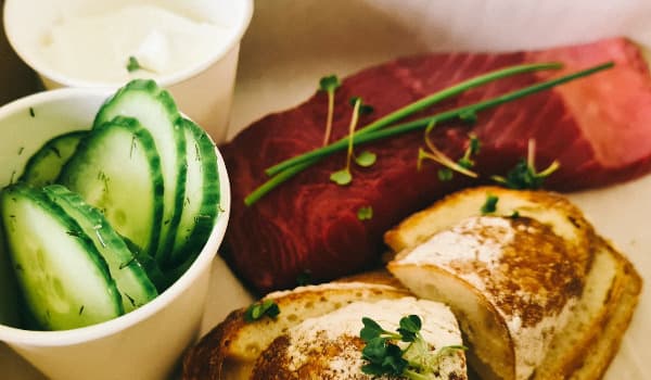 My 16 year old daughter requests this every Christmas! We cure the salmon in beetroot, gin and some other herbs and spices. We supply by the fillet for you to very thinly slice, with some fresh horseradish cream, pickled cucumber and crisp sourdough wafers. Not only does it taste delicious it looks so pretty. Presented in a beautiful grazing box.
