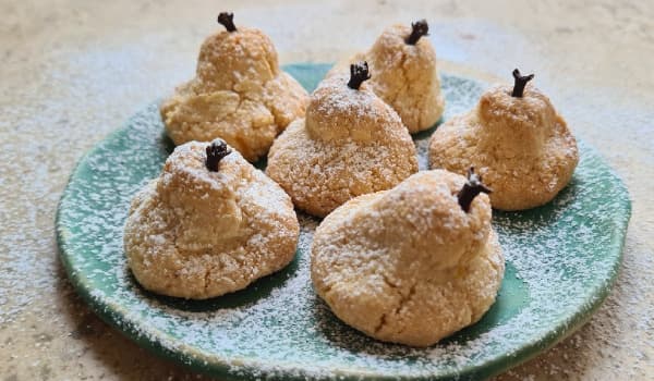 Cute little almond meal pears - like a chewy amaretti. One thing though - you have to eat the whole thing - the clove adds a whole delicious dimension!
