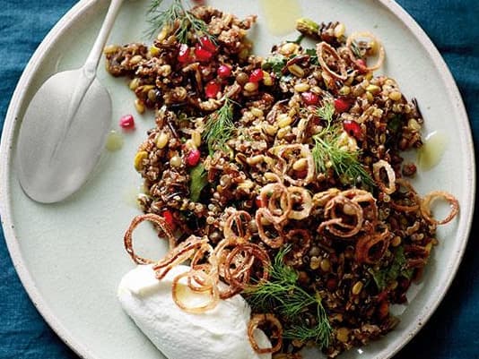 Not that many years ago we started to hear about "ancient grains" and now quinoa, freekah and wild rice are an everyday food source! This mix of grains combined with seeds, pomegranate, herbs and some labne turn an everyday meal into something special! Nutritious and delicious. Pls advise if require vegan as labne can be provided separately.