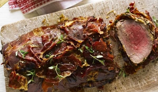 We smother the eye fillet with housemade pesto and wrap it in proscuitto and roast it to medium rare. Delicious cold or reheated. Please advise if you want it cooked more rare. We include some of our balsamic and onion relish
