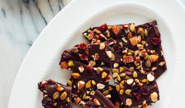 Callabaut Belgian chocolate with a mixture of dried fruit, nuts and seeds! I like to think this is a nutritious treat as we only use dark chocolate topped with all good things!
