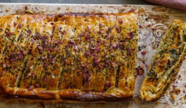 Not just beautiful to look at this vegetarian dish appeals to everyone. The vegetables are roasted with delicious herbs and spices tossed with grains and encased in flaky pastry. YUM