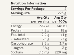 Vegetable stock (Wheat), Broccoli, Potatoes, Brown onion, Kale, Olive oil, Crushed garlic, Crushed ginger, Pink salt, Parsley, Ground white pepper, Frozen peas, Spinach