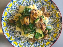 A fresh take on the comforting classic—sautéed mushrooms, ribboned zucchini, and tender baby spinach folded through a silky white wine and mushroom sauce. Nestled beside a cloud of buttery mashed potato. Creamy, cozy, and secretly full of veg.