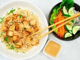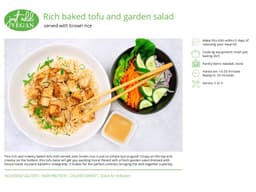 This rich and creamy baked tofu dish served over brown rice is just so simple but so good! Crispy on the top and creamy down the bottom, this bake will get you wanting more! Paired with a fresh garden salad dressed with housemade mustard balsamic vinaigrette, it makes for the perfect contrast, bringing the dish together superbly. Pantry items needed: none; Hands-on: 15-20 mins, ready in: 35 mins; Cooking equipment: baking dish, small pot; Use within 5 days of receiving your meal kit.
