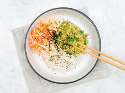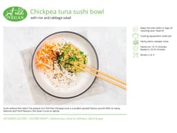 Sushi without the mess? Yes please! Our fish-free chickpea tuna is a protein-packed flavour punch! With so many textures and fresh flavours, this bowl is sure to satisfy. Pantry items needed: none; Hands-on: 10-15 mins, ready in: 20-25 mins; Cooking equipment: small pot; Use within 5 days of receiving your meal kit.