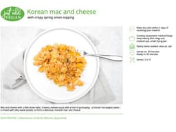 Sweet potato, Elbow pasta (Wheat), Water, Gochujang cashew sauce [Olive oil, Cashews raw, Hot water, Gochujang (Soy), Apple cider vinegar, Salt, Nutritional yeast, Garlic powder], Panko breadcrumbs (Wheat), Spring onion, Olive oil (pantry item), Garlic, Salt