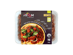 "FROOM Mince is mushroom-based and combines a great texture with a delicious umami flavour. It is made with all natural, non-GMO ingredients and is a good source of fibre and protein. FROOM Mince has a 4.5 star health rating and is free from added gluten, soy, sugar and seeded oils. Great for cottage pie, rissoles and any other dish that needs a plant-based mince alternative. Store in your fridge and use within 21 days.