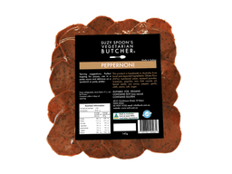 Suzy Spoon's Peppernoni has been lovingly created with care and attention to detail and is high in protein (31g per 100g). Suzy Spoon's have selected only the finest quality spices to create this complex flavour combination, including black pepper corns, garlic, and that familiar red sweetness of paprika. Perfect for creating a classic home-made pizza or for a special night in with vegan cheese & peppernoni toasties melted under the grill. Or use Suzy Spoon's Peppernoni to spice up your grazing plate and charcuterie board and you’ll be the hit of the party. Use within 8 weeks.