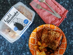 Layers of roasted eggplant and Lentil Bolognese topped with a creamy Vegan Bechamel is perfectly accompanied with twice roasted lemon and oregano potatoes. Use within 5 days. Only suitable for Wed/Thu delivery.