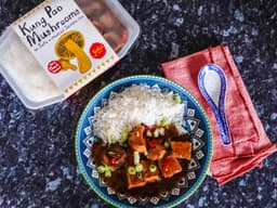 White vinegar, Jasmine rice, Asian shallot, Ginger, Red chilli, Freshly ground black pepper, Garlic, Onion, Water, Brown sugar, Vegetable oil, King Brown Oyster mushrooms, Tofu (Soy), Chilli flakes, Potato starch, Ground white pepper, Soy sauce (GF)