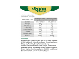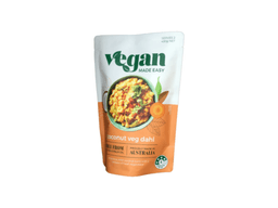 Vegan Made Easy's delicious Coconut Veg Dahl offers a luscious, creamy textured dahl with a big hit of coconut flavour. The addition of 7 fresh vegetables and split red lentils, and gentle Indian spices, complete this tasty dahl that is popular with everyone – even kids! 2 Servings per package. Keep refrigerated. Use within minimum 2 weeks.