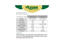 Tinned tomato, Onion, Black beans, Corn kernels, Lime juice, Garlic, Flavouring, Paprika ground, Cumin ground, Coriander, Sugar, Canola oil, Salt, Chilli