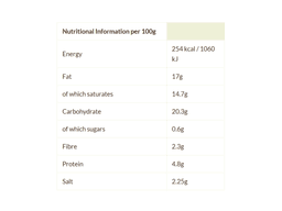 Water, Potato starch, Refined coconut oil, Chickpea flour, Nutritional yeast, Sea salt