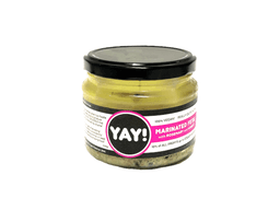 Black peppercorns whole, Sunflower oil, Tofu (Soy), Certified organic cocount oil, Lemon juice, Apple cider vinegar, Garlic, Rosemary, Sea salt, Chilli flakes