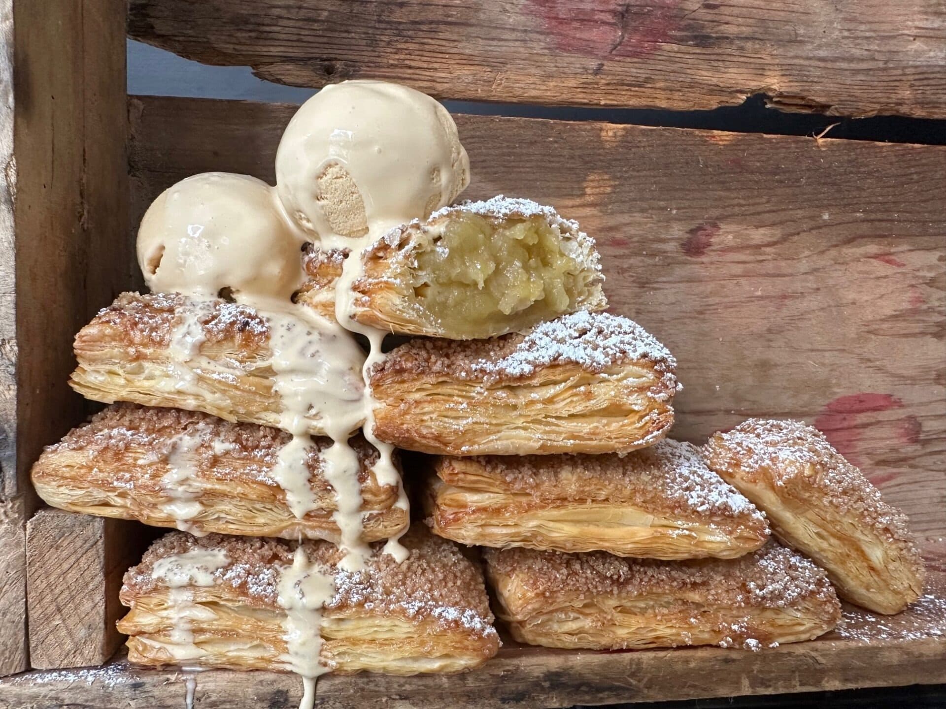 Granny smith apples, vanilla bean, cinnamon and star anise all baked into a crunchy butter puff pastry shell. Each packet contains 4 turnover – bake from frozen when you please.