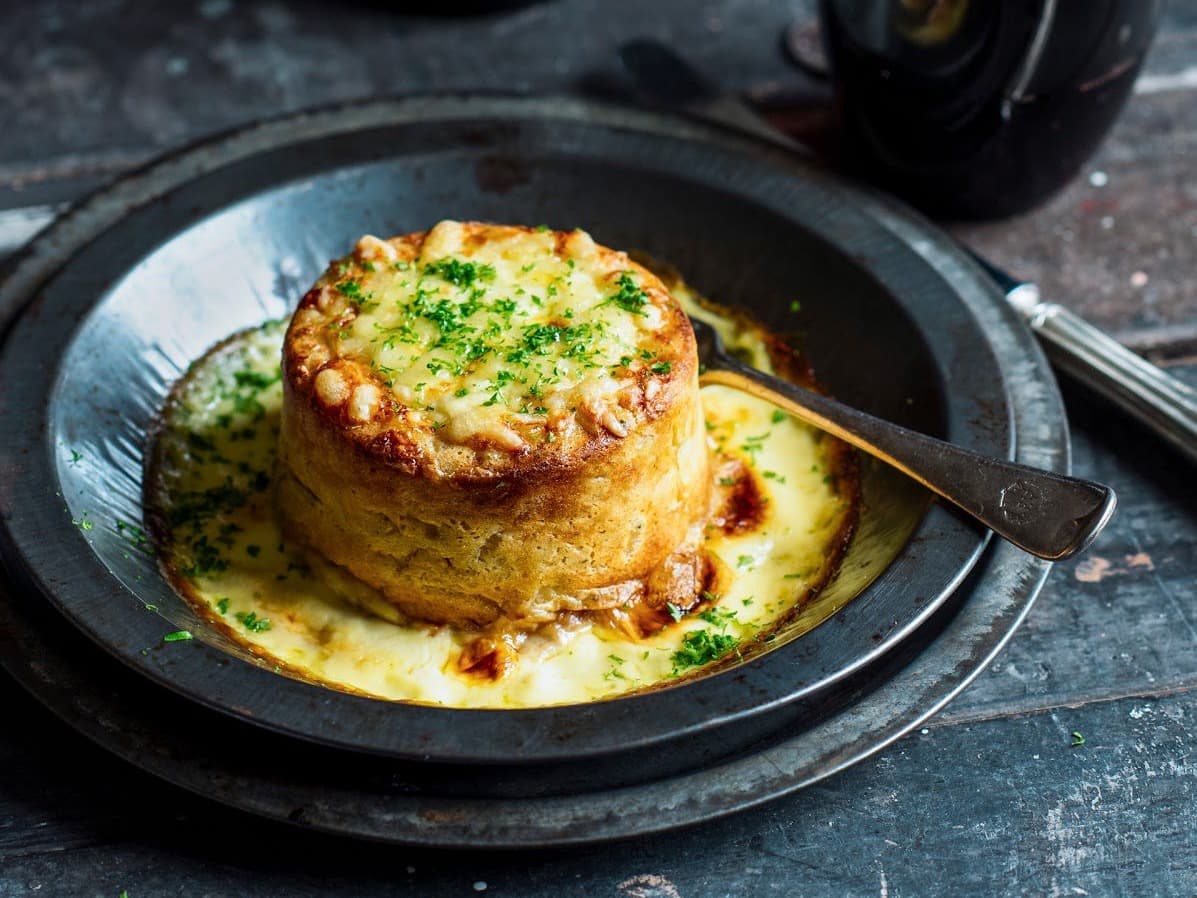 Golden, airy, and irresistibly rich, our double-baked soufflé is folded with three luscious cheeses for a decadent yet delicate finish. Served alongside a vibrant spring green salad brimming with interesting leaves – from peppery rocket to tender baby spinach and crisp little gems – this dish strikes the perfect balance of indulgence and freshness. A comforting classic with a modern, seasonal twist.