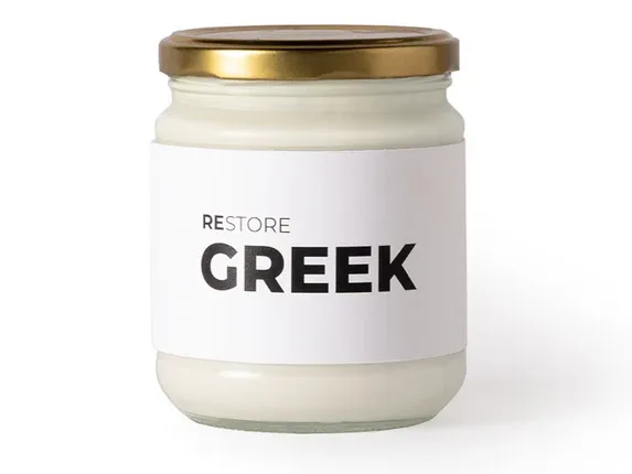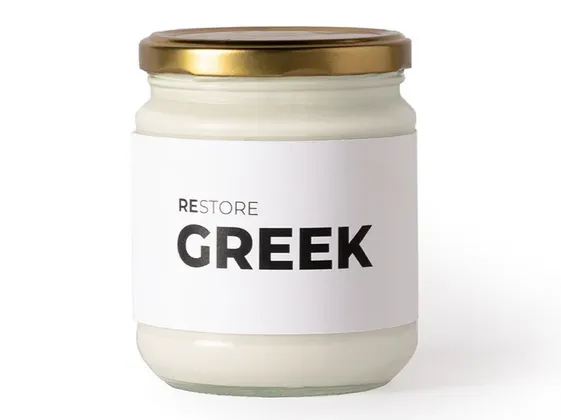 Thick & Creamy Natural Yoghurt. Locally sourced & bottled by our friends at Restore. Delight in our thick and creamy all-natural yoghurt, lovingly crafted in Sydney by fifth-generation artisans. Free from added sugar, gelatine, thickeners, artificial colours, flavours or preservatives — this is yoghurt as it was meant to be. Our eco-friendly jars are designed to be reused and refilled — so once you've savoured that last spoonful, simply leave your empty jar out for collection with our box and we'll take care of the rest.