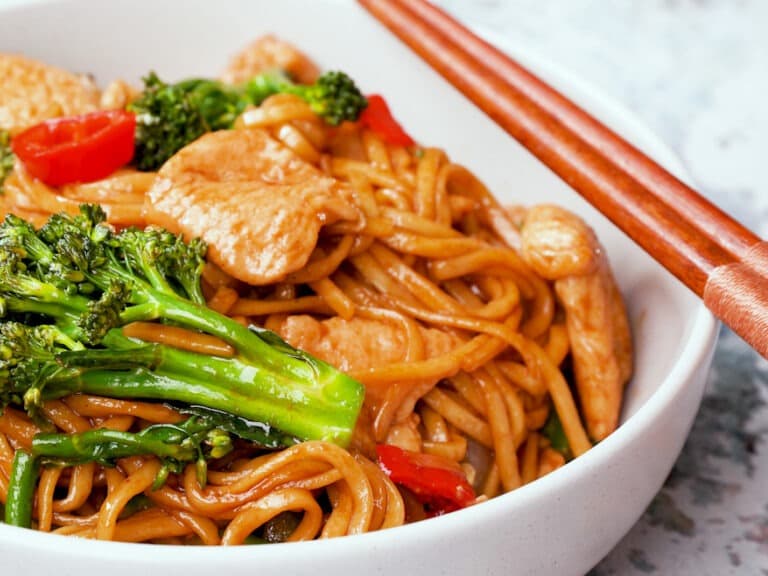 Tender chicken thigh pieces marinated in ginger, honey, garlic and sesame oil. Heathy mixed green vegetables and sticky house-made Asian marinade.