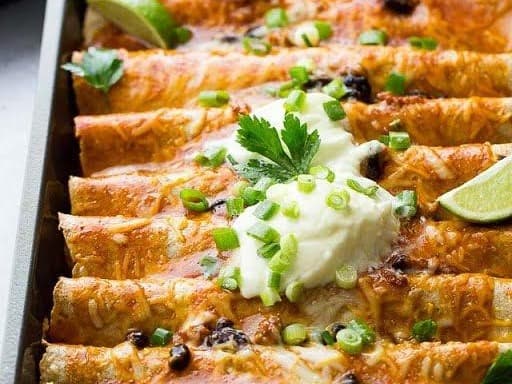 Rich and flavour packed beef mixed with a tangy Mexican bean and chilli sauce then rolled inside flour tortillas and topped with mozzarella and sliced jalapenos. Serve with fresh coriander a squeeze of lime and some sour cream and call it a night well spent. p